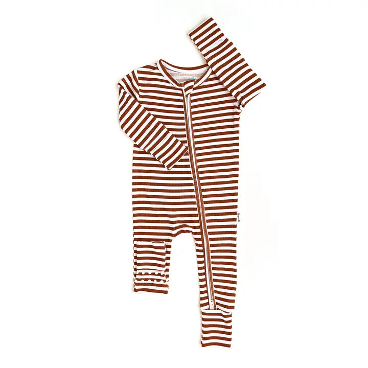 • Striped bamboo viscose zip one-piece sleeper