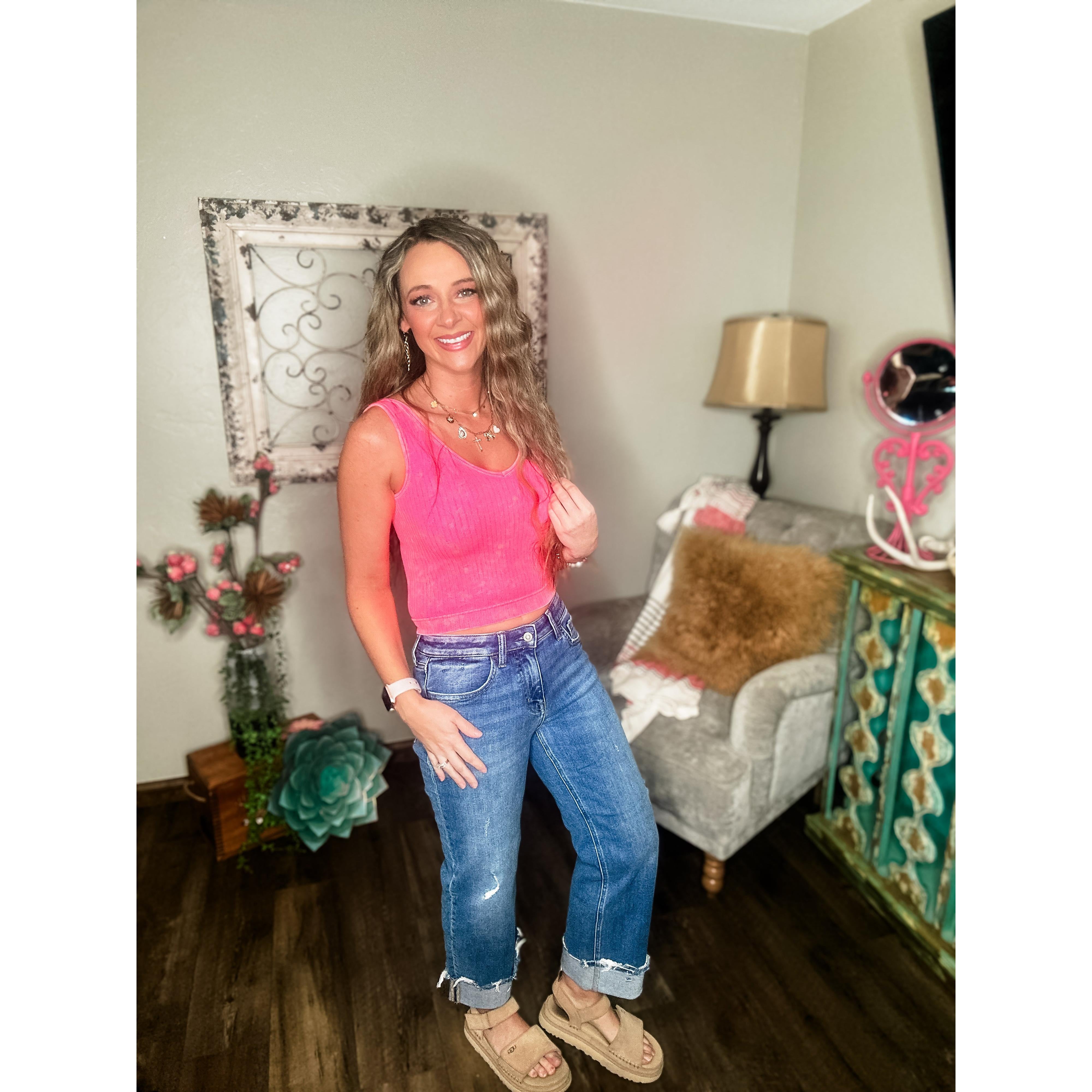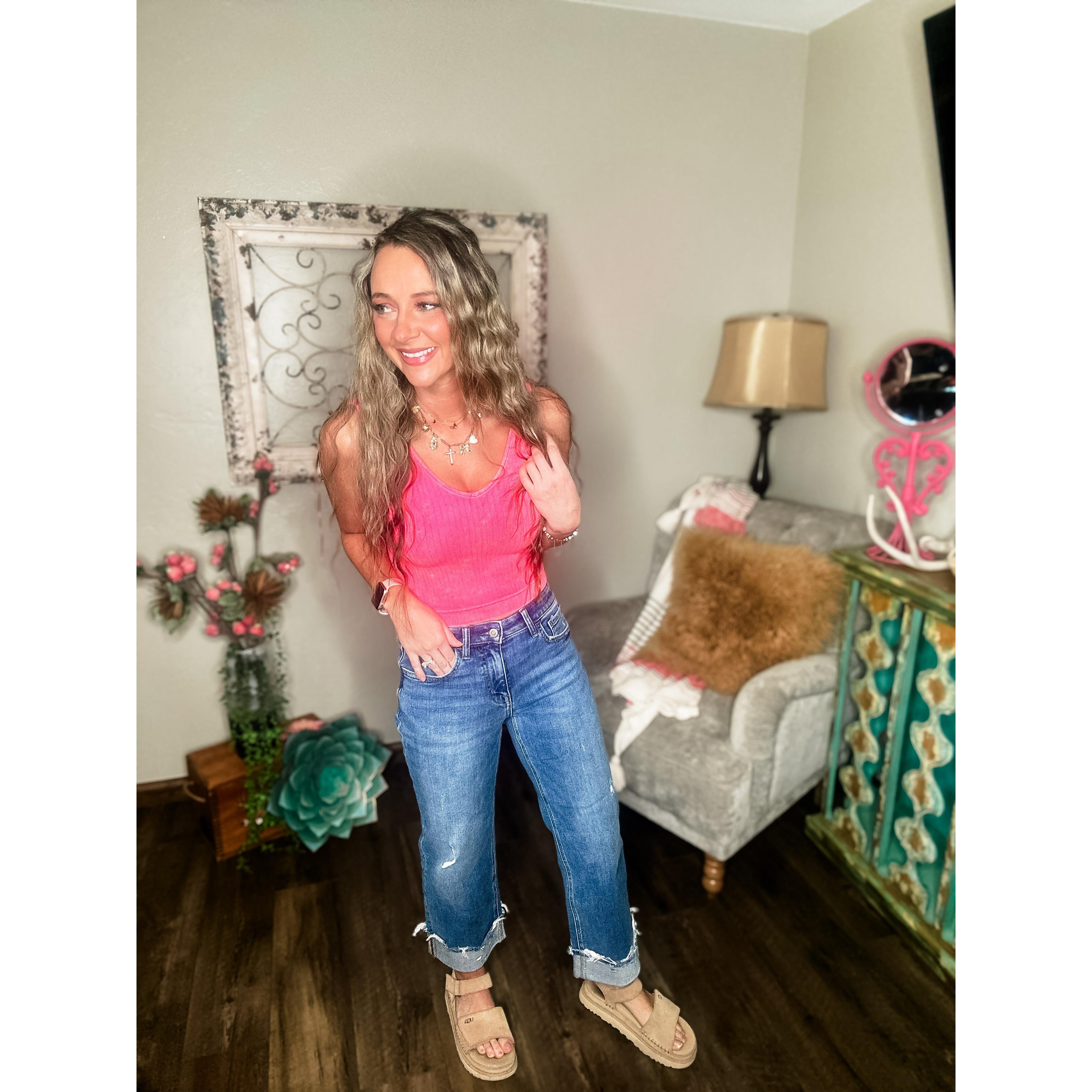 These Flying Monkey jeans are the perfect blend of structure and comfort! Designed with a mid-rise waist (9.25”), these jeans have a relaxed slim wide leg and a soft comfort-stretch denim that feels good all day. The raw cuffed hem (3” single cuff) and subtle distressing give them that perfectly broken-in look. Cropped at just the right length (26.5” inseam) to show off your favorite sandals, sneakers, or boots.